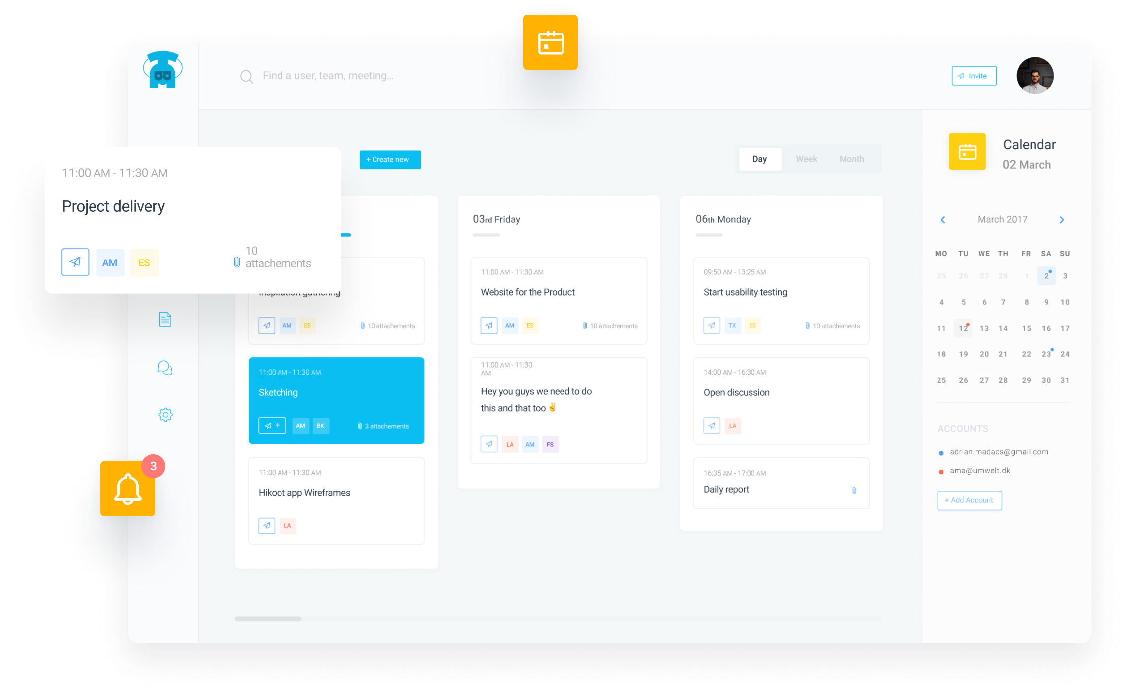 Each team member works with their favorite calendar, while all the date is synced with the master calendar.